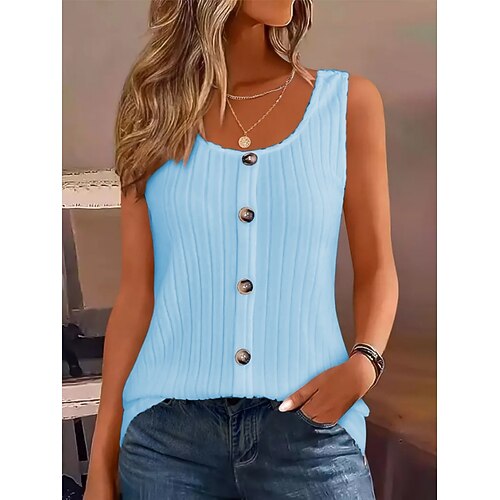 Per donna Camicia con collo camp Tinta unica Elegante Essenziale Casual Senza Maniche Scollo Tondo Top Regolari Quotidiano Bottoni Blu Nero Bianco Vino Viola Estate Primavera