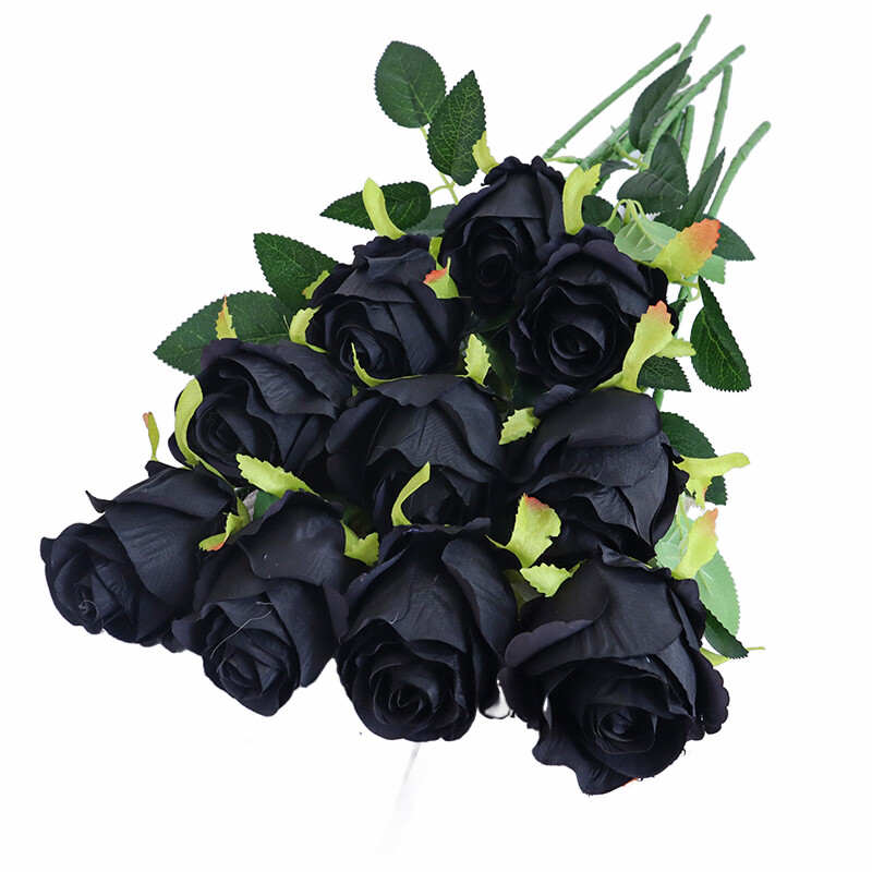 10Pcs 19.68in/50cm Artificial Rose,Realistic Bouquet of Long stemmed False Silk Roses,Simulated Rose,Suitable for Wedding Photography Props Furniture Decoration(black)