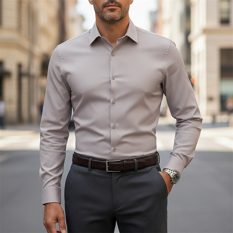 Men's Dress Shirt Button Up Shirt Plain Work Wedding Light Pink Light Blue Wine Royal Blue Long Sleeve Turndown All Seasons Clothing Apparel