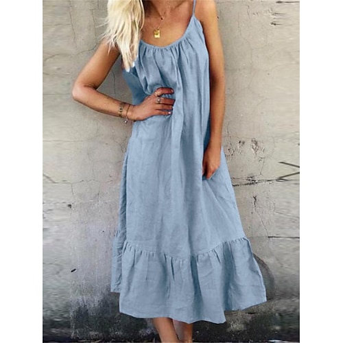 Damen Midikleid Baumwoll-Leinenkleid skims dress Basic Brautkleider schlicht Urlaub Täglich Verabredung Regular Fit Glatt Ärmellos Gurt Weiß Rosa Blau Sommer Frühling