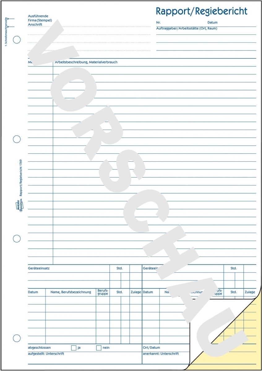 Avery Zweckform Formularbuch Rapport/Regiebericht A4 selbstdurchschreibend 2x40 Blatt