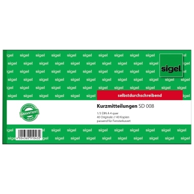 Sigel Kurzmitteilung SD008 1/3 DIN A4 quer 2x40Blatt