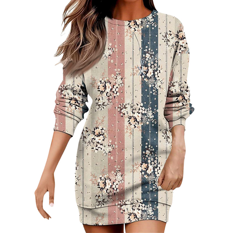 Women's Sweatshirt Dress Mini Dress Shift Dress Casual Vacation Holiday Going out Regular Fit Floral Graphic Geometric Long Sleeve Crew Neck Rusty Red Purple khaki Fall Winter