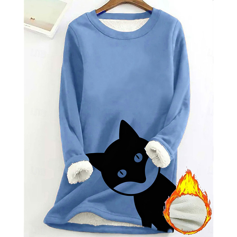 Women's Pullover Graphic Animal Warm Classic Casual Long Sleeve Crew Neck Regular Tops Casual Home Street Print Blue White Pink Purple Beige Spring Fall Winter