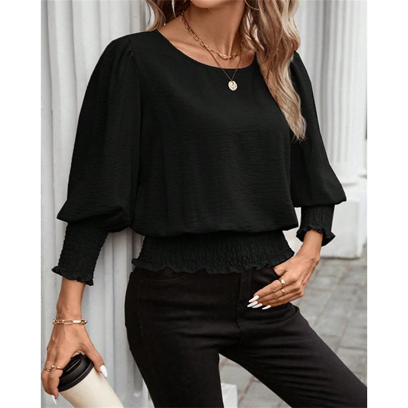 Women's Blouse Plain Elegant Vintage Tropical Long Sleeve Crew Neck Regular Tops Daily Holiday Going out Black White Wine Army Green Blue Spring Fall