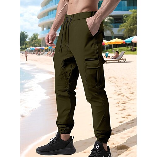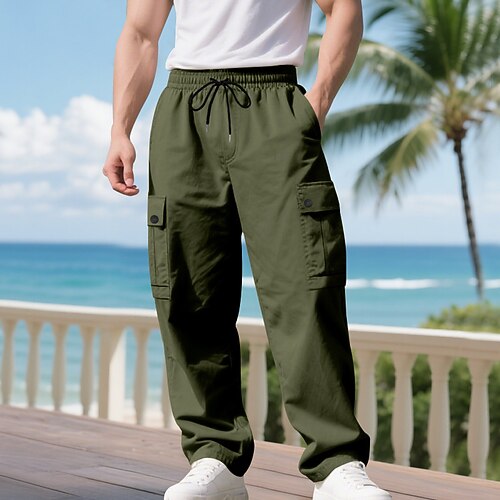 Herren Cargo-Hosen Hose Kordelzug Elastischer Bund Mehrere Taschen Einfach tragbar Outdoor Täglich Campen und Wandern Mode Klassisch Schwarz Armeegrün