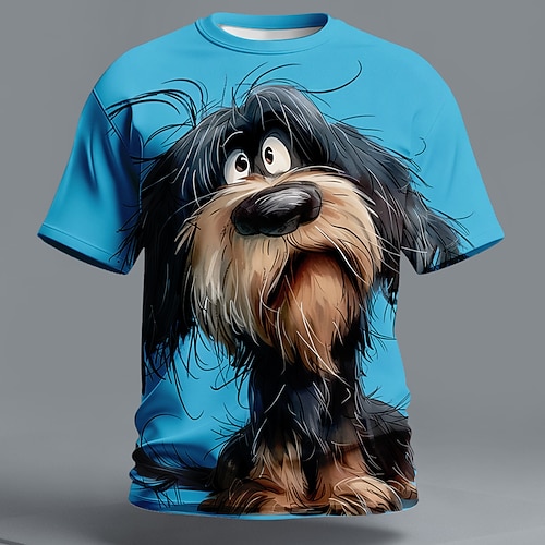 Maglietta da uomo divertente con cane peloso, maglietta grafica 3D con cucciolo dai capelli spettinati, stampa di un simpatico terrier trasandato, top casual a maniche corte, abbigliamento S M L XL