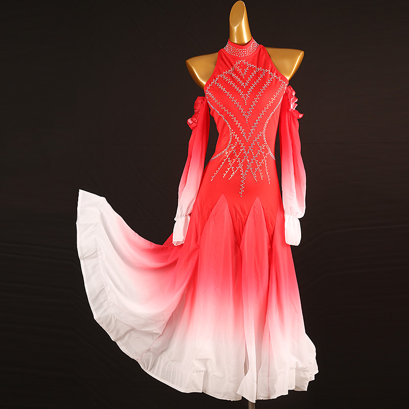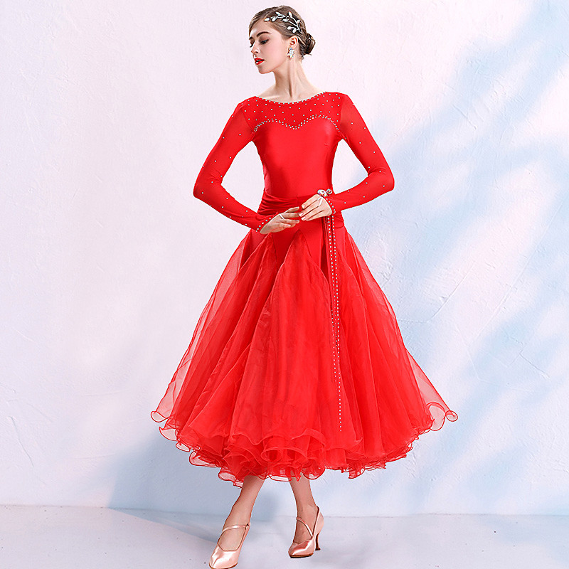 Ballroom Dance Dress Split Joint Crystals Competition Dress/ Rhinestones Women's Performance Long Sleeve Spandex