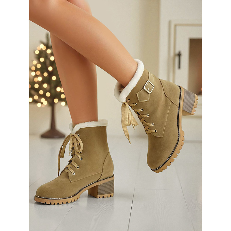 Women's Light Brown Fleece Lined Winter Ankle Boots – Warm Chunky Heel Snow Booties for Ladies, Anti-Slip Outdoor Shoes for Work, Travel, Shopping Cold Weather