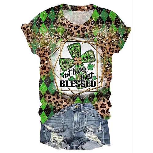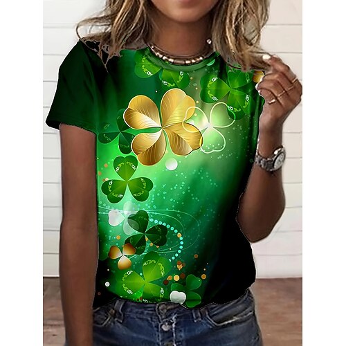 Maglietta da donna di San Patrizio Fortunata Cuore Shamrock Stile Vintage Elegante Casual Maniche Corte Collo a Giro Regolari Tops Stampa Quotidiana Verde Salvia Verde Chiaro Verde Estate Primavera