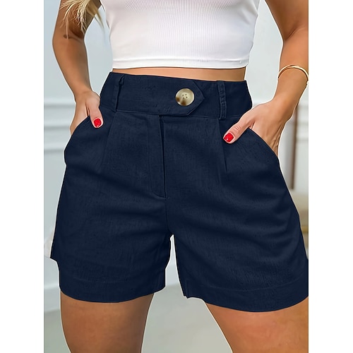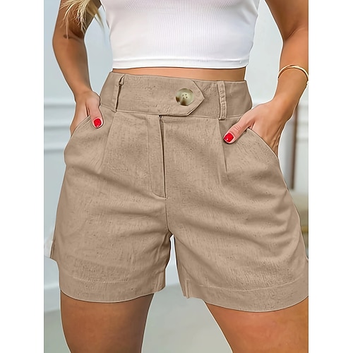 Damen Kunstbaumwollleinen Shorts Sommershorts Strandshorts Urlaub Mode Alltagstauglich Kurz Hohe Taille Einfarbig Einfach Kordelzug Tasche Elastischer Bund Komfort Weich Atmungsaktiv Unelastisch