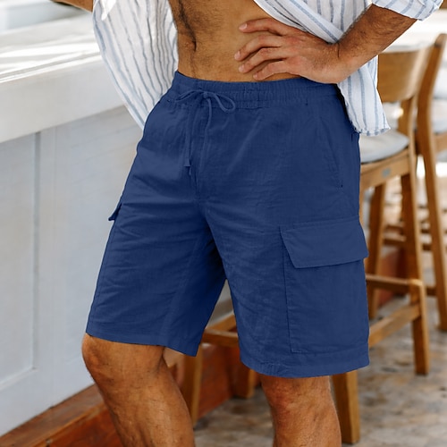 Herren Cargo-Shorts Shorts Leinenshorts Sommershorts Strandshorts Kordelzug Elastischer Bund Mehrere Taschen Einfach Komfort Kurz Outdoor Strand Urlaub Hawaiianisch Schwarz Weiß Unelastisch