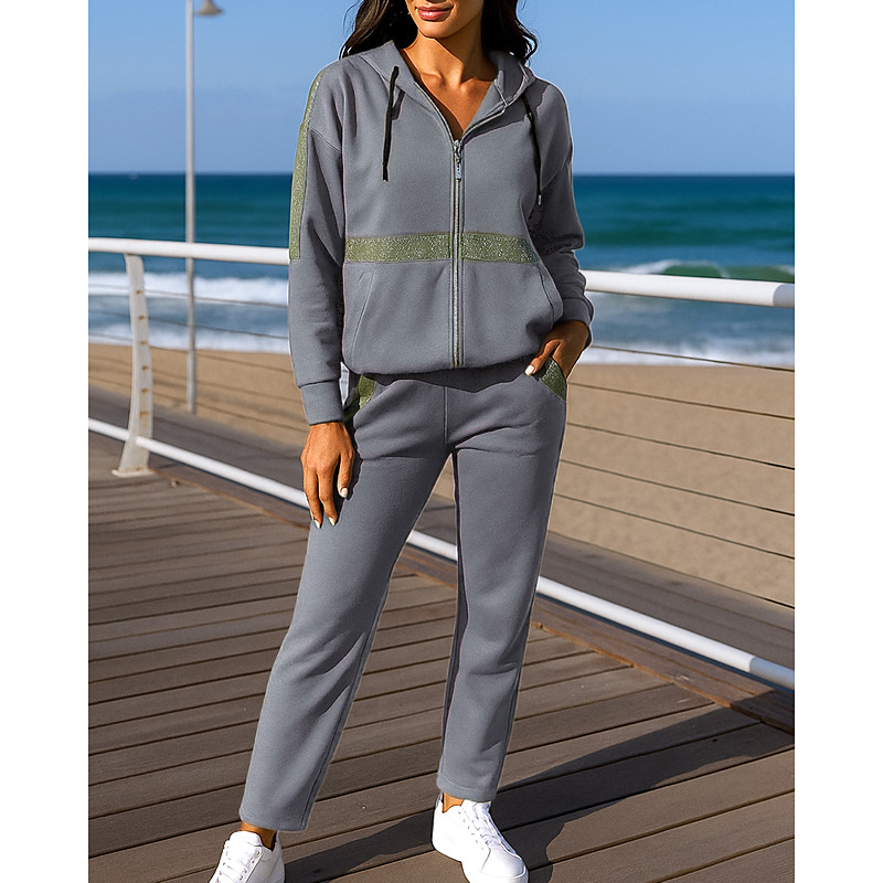 Women's Pullover Sweatsuit Sets 2 Piece Tracksuit Lounge Outfits with Pocket Solid Colored Clothing Suit Fall Dark Grey Black Spandex Gym Running Fitness Breathable Long Sleeve Sport Activewear