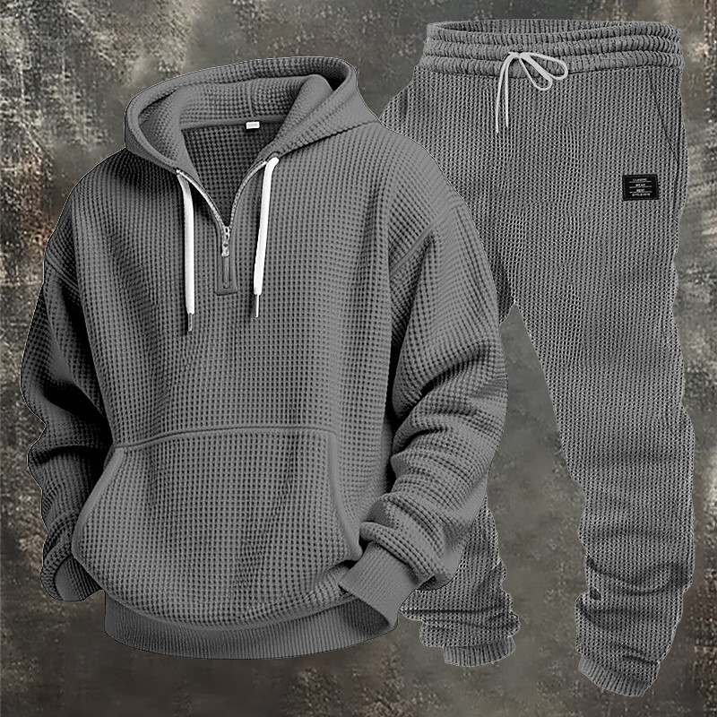 Men's Matching Sets Black Hoodie Sweatshirt Zip Up Hoodies Sweatpants Trousers Waffle Pants Sets Long Sleeve Hooded Outdoor Vacation Plain Pocket 2 Piece Polyester Spring