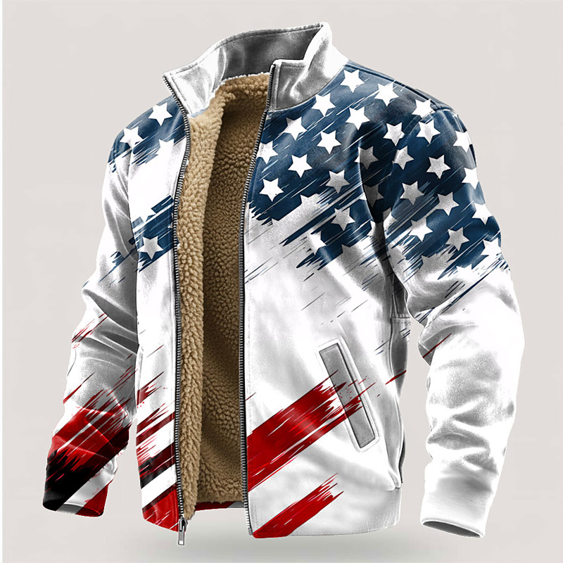 America's 250th Anniversary Men's American US Flag Fleece Jacket Sweatshirt Fashion Daily Simple Casual Stand Collar Zip Outdoor Vacation Gift Going out Blue White 1 Blue 2# White Pocket Front Zipper