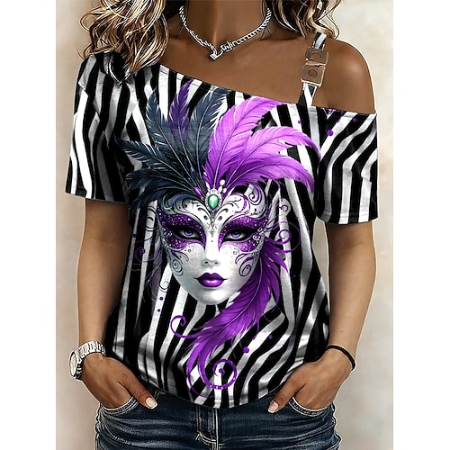 Martedì grasso Per donna Maglietta Grafico Tropicale Hawaiano Elegante Manica Corta Collo asimmetrico Top corti Quotidiano Sportivo Uscire Bianco / Nero Bianco Giallo Verde chiaro Viola Estate