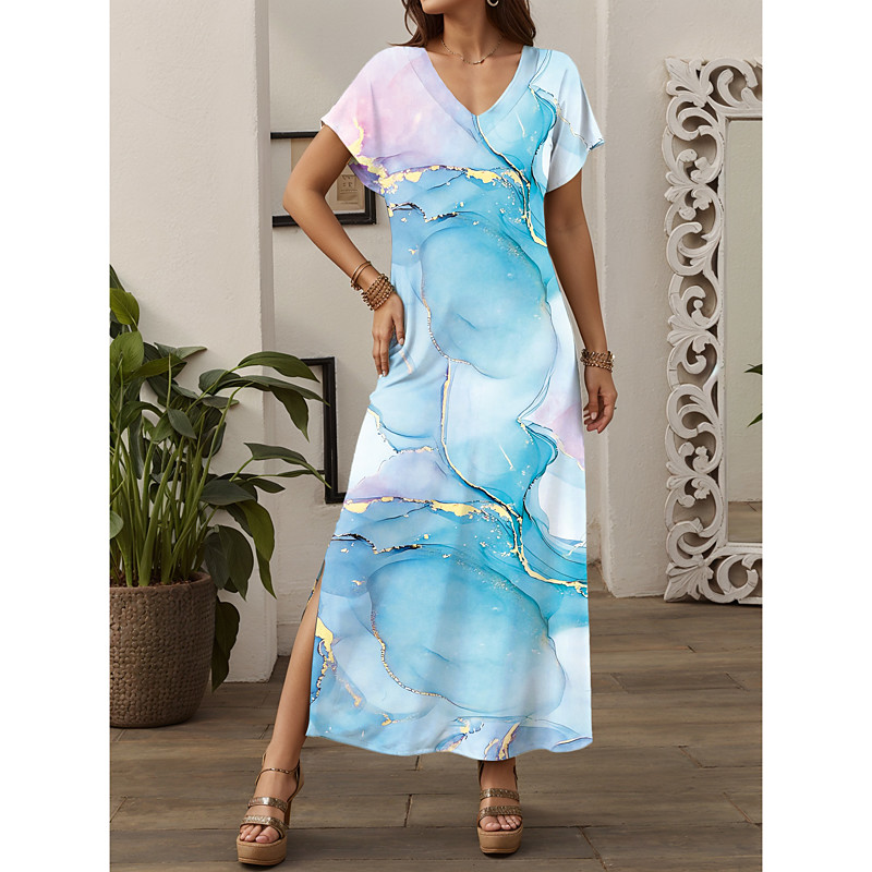 Women's Midi Dress Sundress A Line Dress Vacation Casual Boho Going out Loose Fit Ombre Graphic Geometric Short Sleeve V Neck Navy Blue Blue Sky Blue Purple Summer Spring Fall