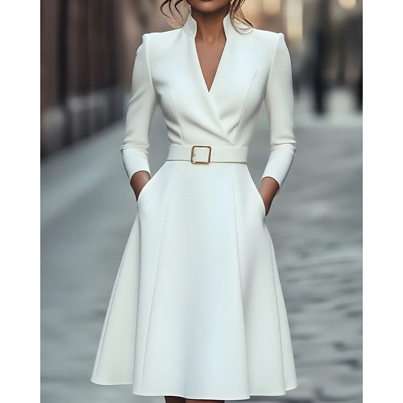 Women's Mini Dress Black Dress Sheath Dress Elegant Fashion Modern Daily Office Holiday Regular Fit Plain Long Sleeve V Neck Black White Wine Dark Blue Spring Fall Winter
