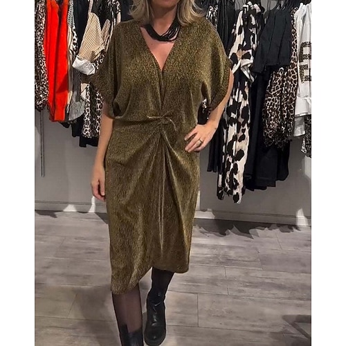 Per donna Abito Midi Vestito Casual Vestito T-Shirt Moderno Quotidiano Uscire Weekend Vestibilità regolare Semplice Manica Corta Scollo a V Nero Vino Marrone Verde Primavera Autunno