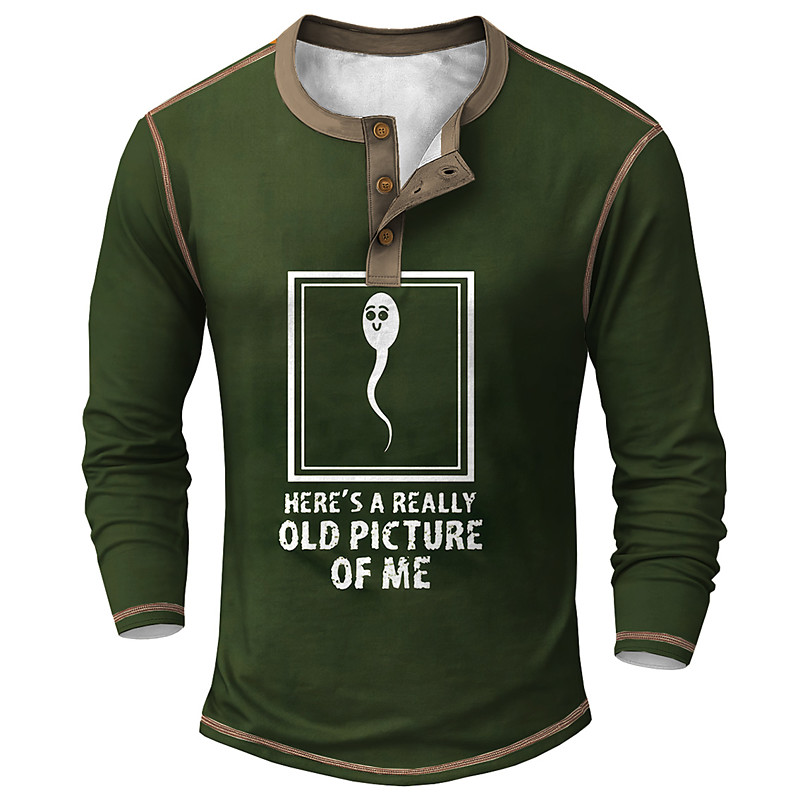 Funny 'Old Picture of Me' Sperm Graphic Men's Long Sleeve Henley Shirt