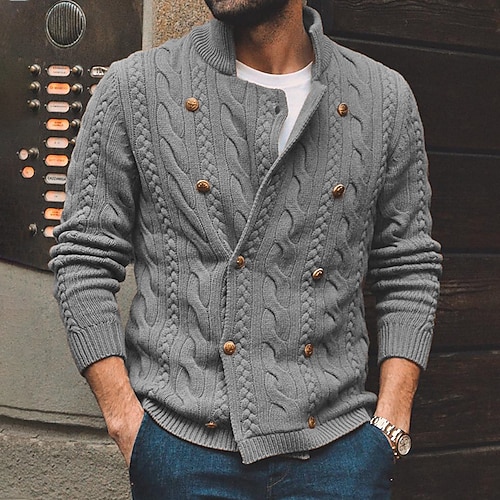 Per uomo Maglione a trecce Felpa Cardigan Treccia Maglia Top Regolari Cardigan con Bottoni Lavorato a maglia Semplice Collo alla coreana Vacanza Moda Casuale Abbigliamento quotidiano Abbigliamento