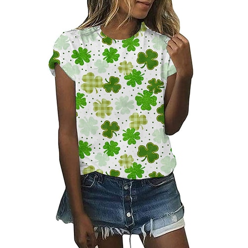 Giorno di San Patrizio Festa di San Patrizio Per donna Maglietta Foglia Giorno di San Patrizio Manica Lunga Girocollo Top Regolari Ferie Weekend Stampato Nero Bianco Verde chiaro Verde