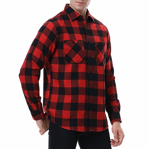 Per uomo Camicia Camicia casual Camicia di flanella Camicia con Bottoni Sopracamicia A quadri All'aperto Streetwear Nero Bianco Giallo Rosso Manica Lunga Bavero Primavera Autunno Abbigliamento