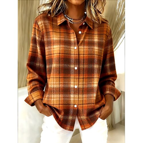 Per donna Camicia Blusa Plaid Moderno Casual Manica Lunga Colletto a Camicia Top Regolari Ferie Uscire Bottoni Stampato Nero Bianco Rosa Marrone chiaro Marrone Autunno