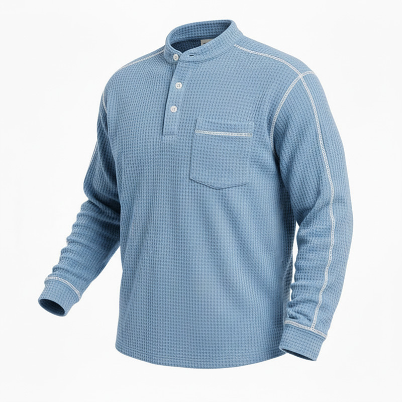 Men's Waffle T-shirt T Shirt Waffle Henley Shirt Long Sleeve Henley Fall All Seasons Solid Color Textured Casual Pockets Casual Home Outdoor Blue Red Navy Blue Top Tee for Men