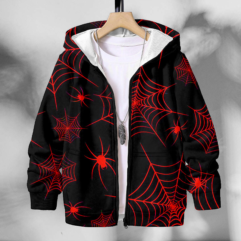 Halloween Boys 3D Spider Hoodie Coat Outerwear Long Sleeve 3D Print Fall Winter Fashion Streetwear Cool Kids 3-12 Years Outdoor Casual Daily Regular Fit