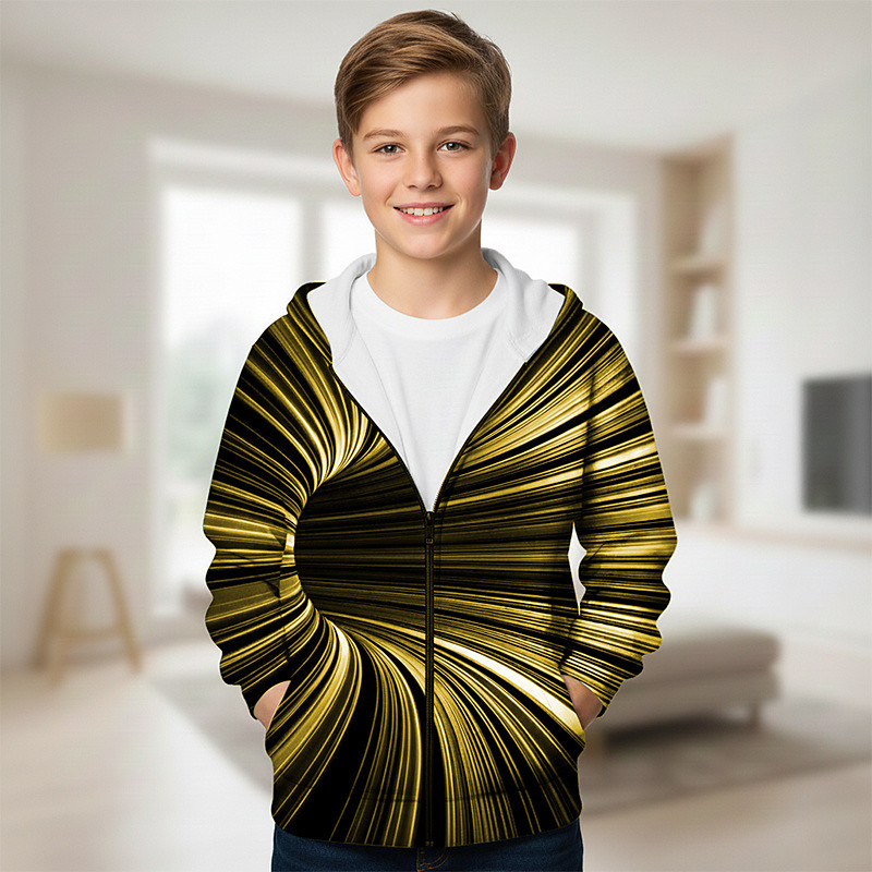 Girls' 3D Geometric Hoodie Coat Outerwear Long Sleeve Spring Fall Adorable Sport Kids 4-12 Years Zip Street Daily Regular Fit