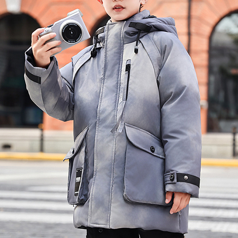 Kids Boys' Down Coat Outerwear Letter Long Sleeve Coat Outdoor Cotton Cool Daily Red Blue Green Fall Winter 7-13 Years