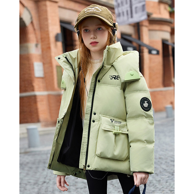 Kids Girls' Down Jacket Puffer Jacket Solid Color Sports Pocket Keep Warm Windproof Outdoor Coat Outerwear 5-12 Years Winter Blue Black Pink