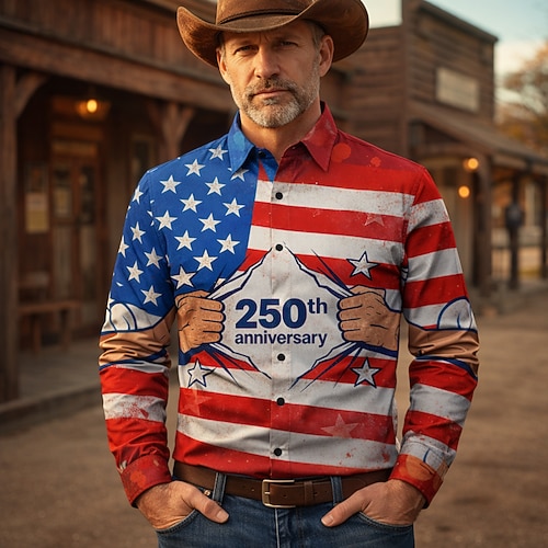American 250 Retro Vintage 1970er Hemd Aloha-Hemd langarm Hippie Geometrisch Ethnisch Kostüm Herren Maskerade 4. Juli Party Unabhängigkeitstag Fünfhundertjahrfeier Erwachsene Hemd