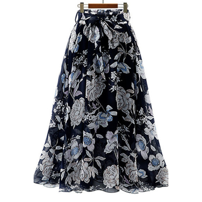Women's Skirt Swing Casual Maxi Mid Rise Skirts Floral Print Micro-elastic Vacation Going out Black White Pink Blue Summer Polyester