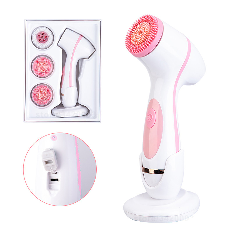 Ultrasonic Electric Facial Cleansing Brush 3 In 1 Silicone Rotating Face Brush Deep Cleaning Skin Exfoliation Waterproof Remove Blackheads Facial Massager
