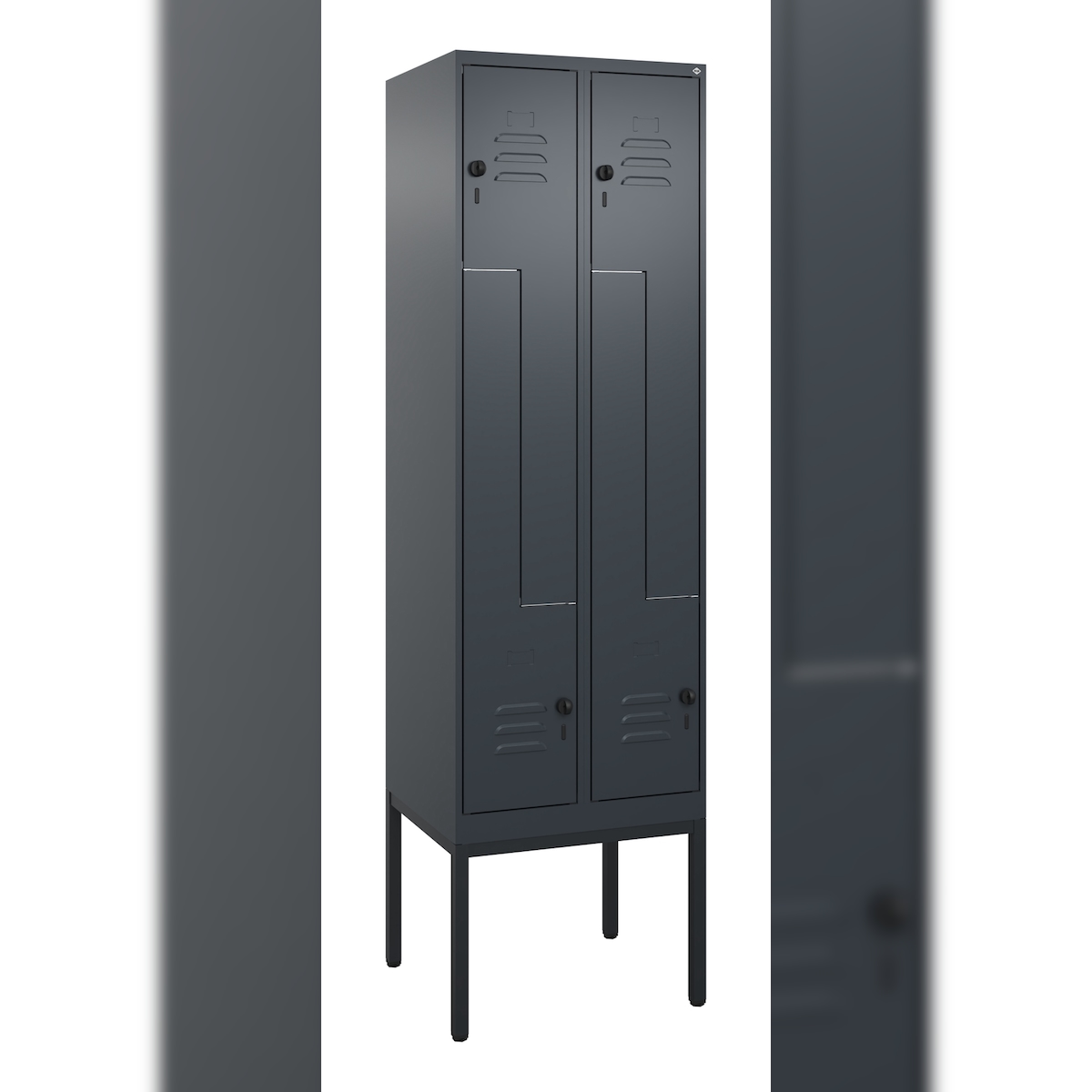 C+P Z-Spind Classic PLUS, Gestell, 4 Abteile, HxBxT 212x60x50cm, Sicherheitsdrehriegel, Anthrazit von PROREGAL