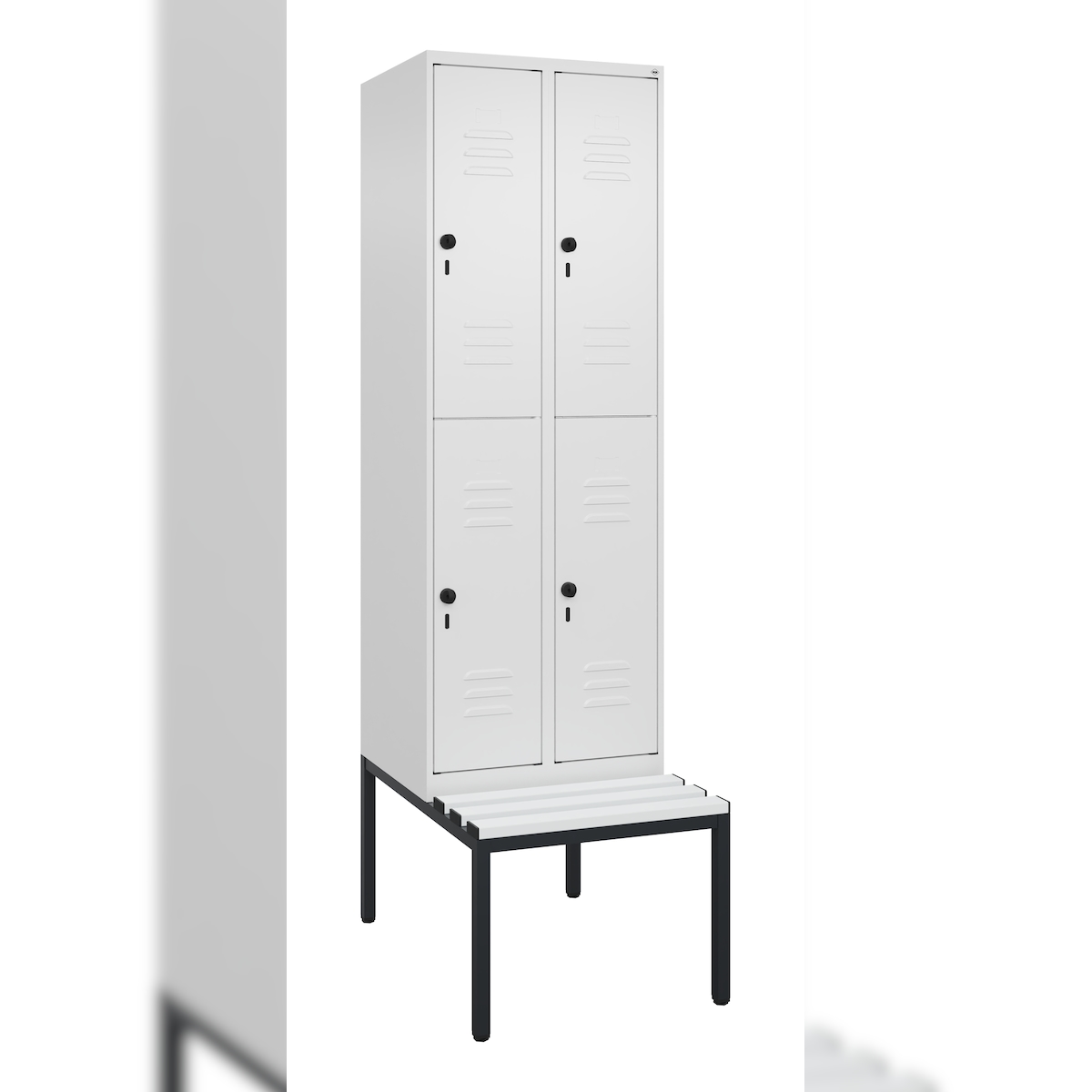 C+P Z-Spind Classic PLUS, schwebender Sitzbank aus Buche 2 Abteile, HxBxT 212x40x82cm, Zylinderschloss, Hellgrau/Lichtblau von PROREGAL
