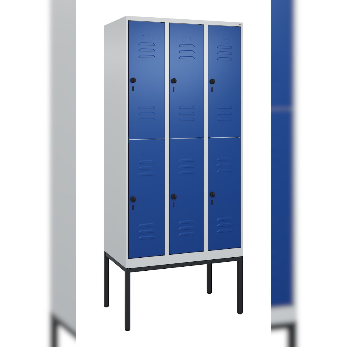 C+P Spind Classic PLUS, Gestell, 6 Abteile, HxBxT 212x90x50cm, Sicherheitsdrehriegel, Hellgrau/Enzianblau von PROREGAL