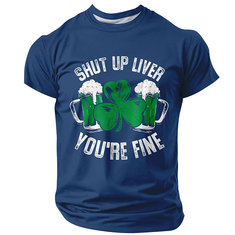 St Patricks Day Shut Up Liver Youre Fine Funny Drinking Black T Shirt Green Beer Mug Shamrock Graphic Tee Clothing Apparel S M L XL XXL XXXL
