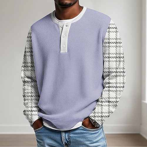 Per uomo Grafico Geometrico Blocco di colori Maglia Henley a nido d'ape Stile casual Stile classico Manica Lunga Moda Designer Essenziale Casuale Quotidiano All'aperto Autunno Primavera Autunno