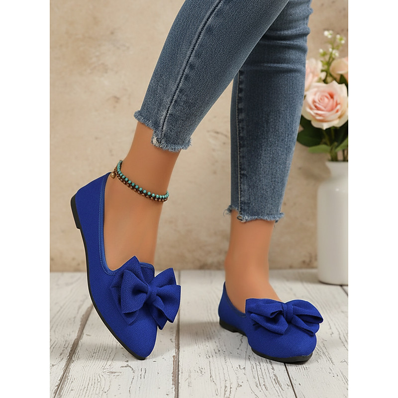Women's Almond Pointed Toe Shoes with Large Bow Detail, Elegant Casual Slip-On Shoes for Daily Wear, Work, Casual Outings and Spring/Summer Events