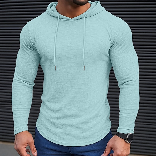 Per uomo Maglietta Manica Lunga Con Cappuccio Primavera Autunno Tutte le stagioni Tinta unica Tradizionale / Vintage Casual Con cappuccio All'aperto Casuale Abbigliamento sportivo Blu chiaro Bianco