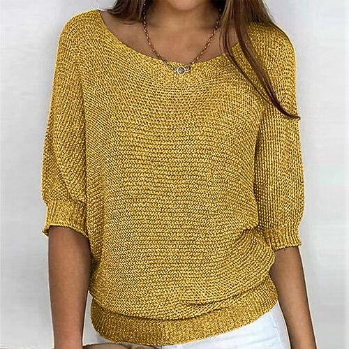 Per donna Felpa Maglione Streetwear Casual Tinta unica Girocollo Lavorato a maglia Manica 3/4 Top Regolari Maglia Quotidiano Ferie Uscire Giallo Rosa Estate Primavera