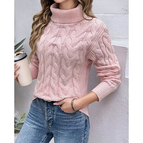 Per donna Felpa Maglione Streetwear Casual Tinta unica Dolcevita Lavorato a maglia Manica Lunga Top Regolari Maglia Quotidiano Ferie Uscire Nero Rosa Autunno Inverno