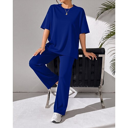 Per donna Moda Streetwear Set di Pantaloni Bolero Top Manica Corta Girocollo Tinta unica Patchwork Casuale Quotidiano All'aperto Blu Rosso Azzurro cielo Estate Vestibilità regolare
