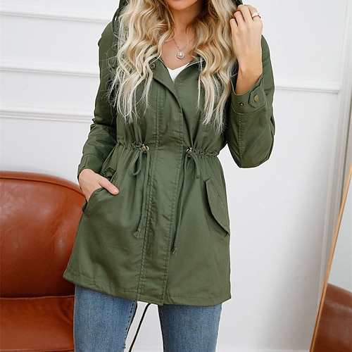 Per donna Trench Impermeabile Caldo Cerniera Tasca Moda All'aperto Semplice Uscire Weekend Cerniera Regolare Con Cappuccio Vestibilità regolare Manica Lunga Capispalla Nero Giallo Vino Autunno Inverno