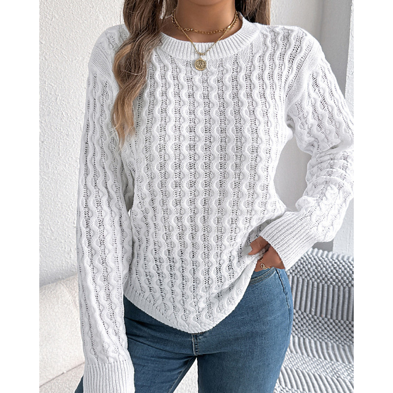 Women's Sweater Pullover Streetwear Casual Solid Color Cable Crew Neck Knitted Cold Shoulder Long Sleeve Regular Tops Knit Daily Holiday Going out Dark Gray Apricot Fall Winter
