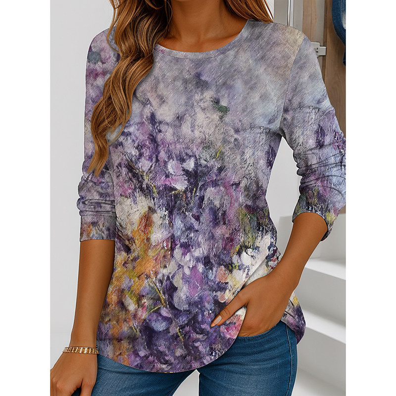 Women's T Shirt Floral Graphic Gradient Elegant Vintage Stylish Long Sleeve Crew Neck Regular Tops Daily Going out Weekend Print White Yellow Light Brown Purple Brown Spring, Fall, Winter, Summer