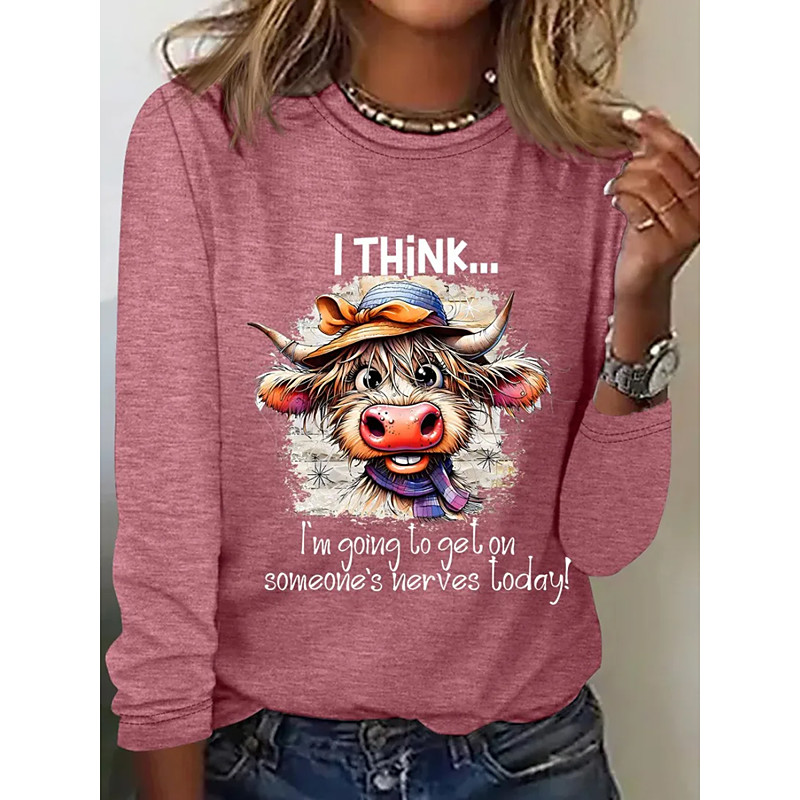 Women's T Shirt Graphic Cow Letter Vintage Fashion Stylish Short Sleeve Long Sleeve Crew Neck Round Neck Regular Tops Daily Weekend Print Black White Pink Green Summer Spring Fall
